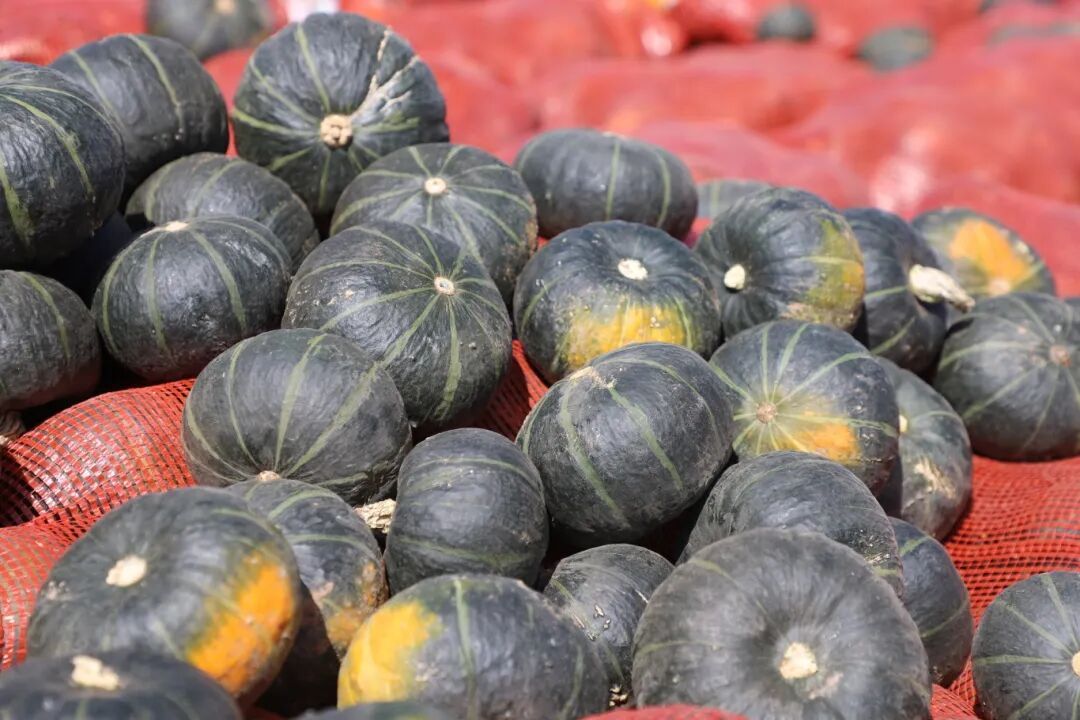 而在不远处的内蒙古蒙盛农牧业专业合作社贝贝南瓜种植区,同样是一派丰收的热闹景象:饱满的贝贝南瓜已尽数采收,装满果实的袋子在田垄间整齐码放,正等待货车转运外销,为这片土地的丰收季再添一抹亮色。