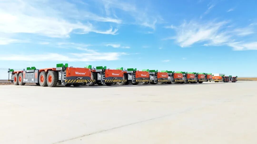 崭新的AGV无人驾驶运输车整齐排列