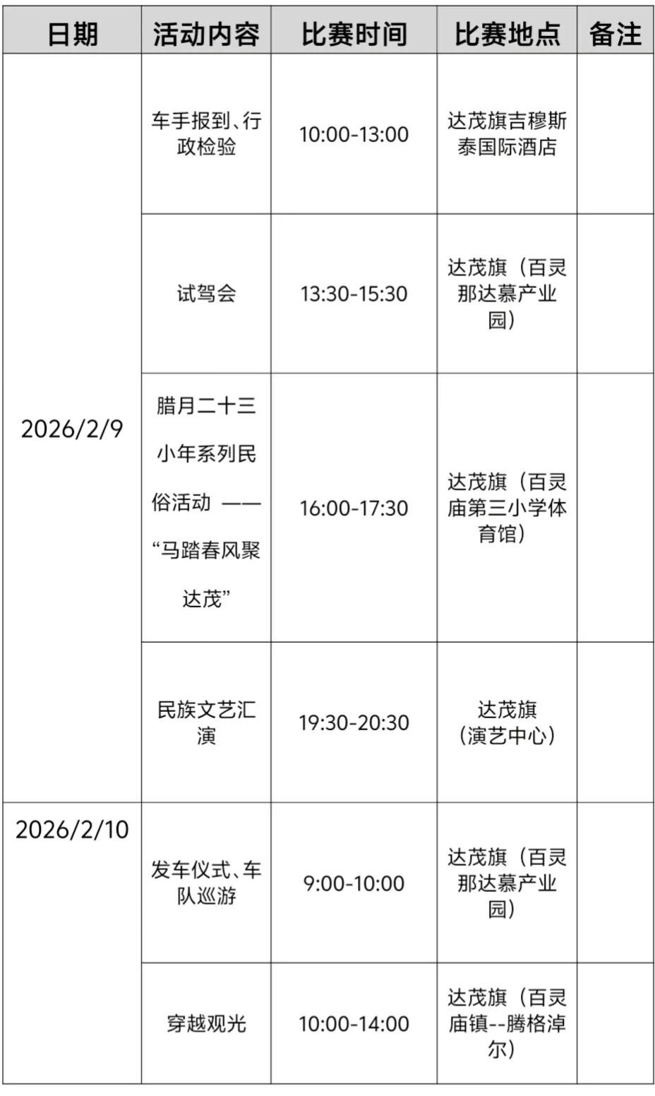 3.活动地点:包头市达茂联合旗(百灵那达慕产业园、腾格淖尔)