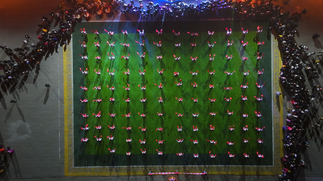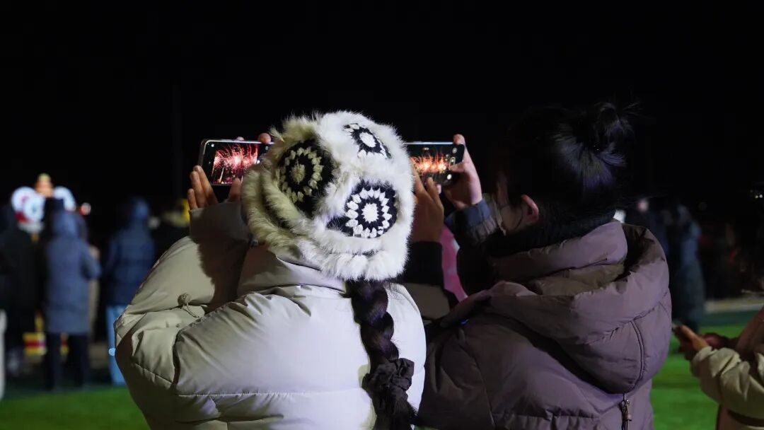 龙狮腾跃、腰鼓铿锵,《奔腾的海骝马》以激昂旋律奏响草原豪情,将现场气氛不断推向高潮。晚八时许,25分钟的焰火秀震撼登场:金色礼花如星河倾泻而下,红色焰火似繁花竞相绽放,将夜空装点得流光溢彩。篝火升腾而起,映照张张笑脸,各族群众载歌载舞,在龙狮秧歌的热闹与璀璨焰火的浪漫中,用欢笑定格团圆瞬间。