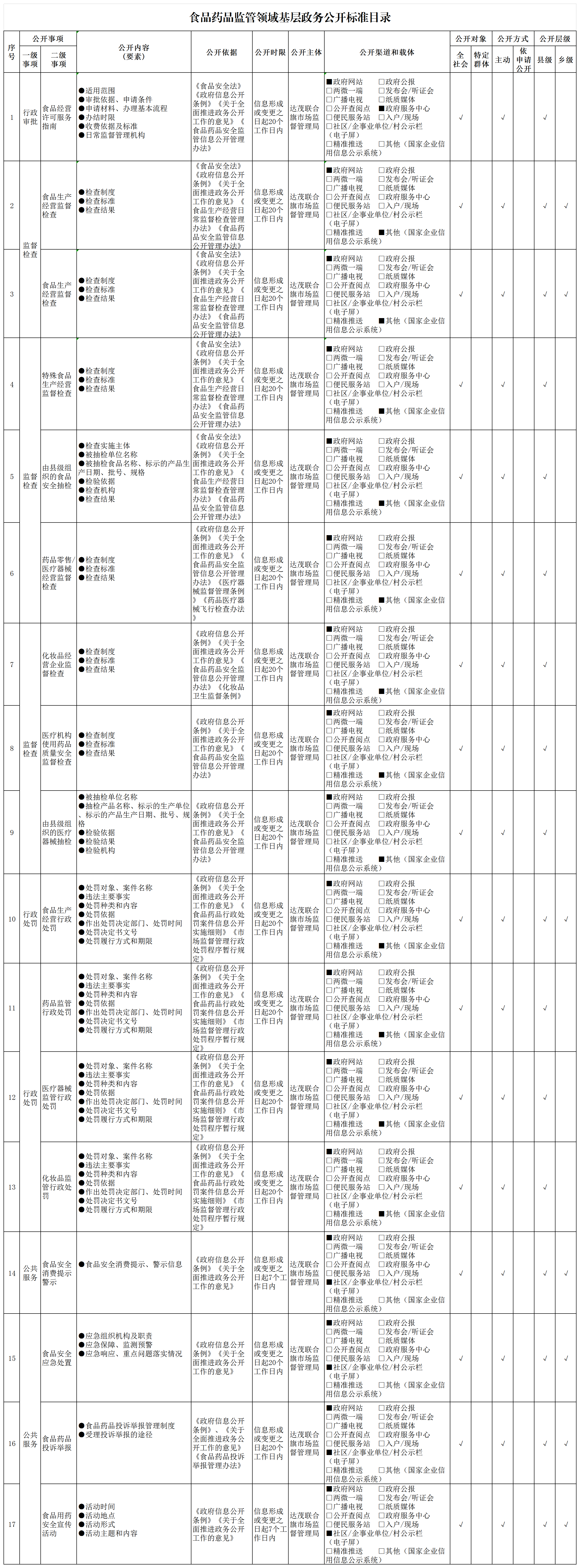 基层政务公开标准目录